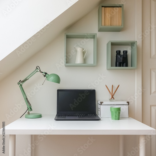 White Home Office Table Cozy And Nice Workplace With Notepads A Stock Photo Image Of Table Desk 107956810